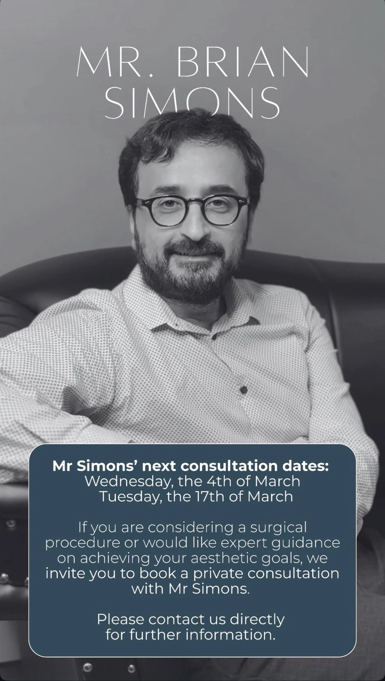 His upcoming consultation dates are now live. If you’re considering cosmetic surgery and would like to explore your options, please complete the enquiry form below to arrange your consultation.